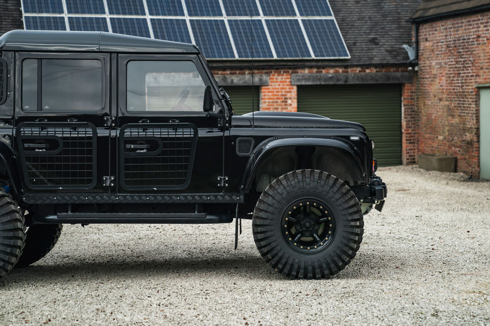 Custom built roll hoop , swing away wheel carrier , tubular side steps , NAS rear step , checker plate wing tops and sills , puma hood with raised letter badges , mesh window grilles.